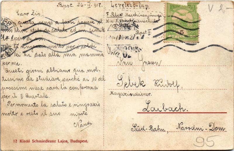 Beschreibung: 1917 Budapest III. M. Kir. Honvéd Központi Ágyraktár és Gőzmosó Intézet. Kaszásdűlő. Schmiedkurz Lajos kiadása (Rb)