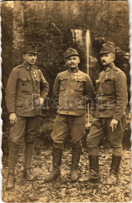 1917 Magyaros-völgy, első világháborús osztrák-magyar katonák kitüntetésekkel a román fronton Erdélyben / WWI K.u.k. Austro-Hungarian military, soldiers with medals in Transylvania. photo (szakadás / tear)