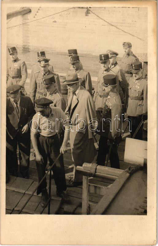 ~1941 Ruszkiczay-Rüdiger Imre (1889-1957) vezérezredes látogatása egy hajón sebesült katonákkal és magas rangú tisztekkel a második világháborúban / WWII Hungarian military, visit of Imre Ruszkiczay-Rüdiger colonel general in a ship full of injured soldiers. photo (fl)