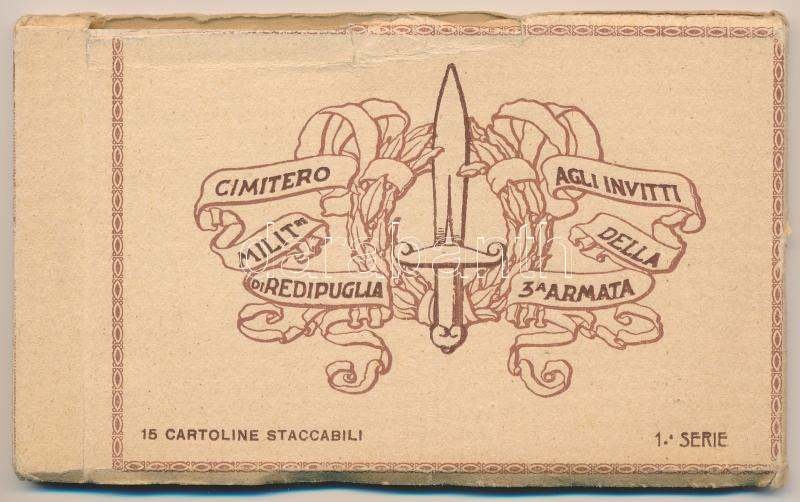 Cimitero Militare di Redipuglia, Agli Invitti della 3a Armata - 1. Serie / WWI Italian military cemetery - postcard booklet with 15 pre-1945 postcards / Első világháborús olasz katonai temető - 15 lapos képeslapfüzet