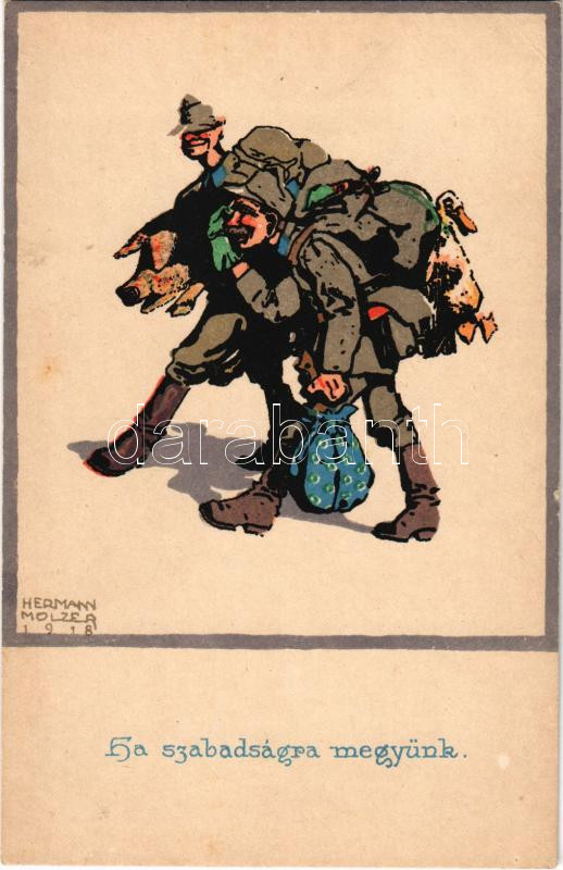 Ha szabadságra megyünk. József Főherceg Vezérezredes Hadikiállítása Budapest-Margitsziget / WWI Austro-Hungarian K.u.K. military art postcard s: Hermann Molzer