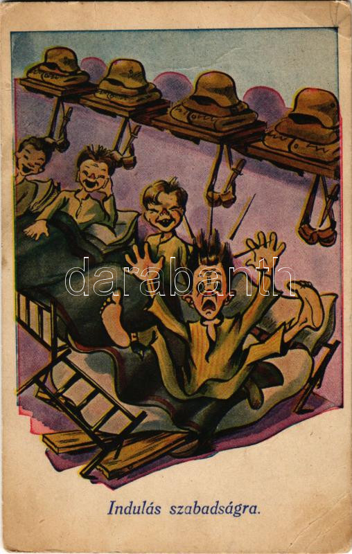 Indulás szabadságra, humoros katonai lap / Hungarian military humour (... https://www.darabanth.com/de/472-Fernauktion/472.0/Ansichtskarten/Militaria~1500057/Indulas-szabadsagra-humoros-katonai-lap-Hungarian-military-humour-EK~II3195520