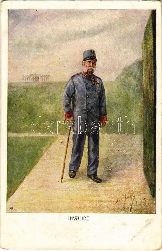 Invalide / WWI Austro-Hungarian K.u.K. military art postcard, support fund, disabled soldier. Offizielle Karte des Kriegshilfsbüros Invaliden-Hilfsaktion Nr. 21-5. artist signed (EK)