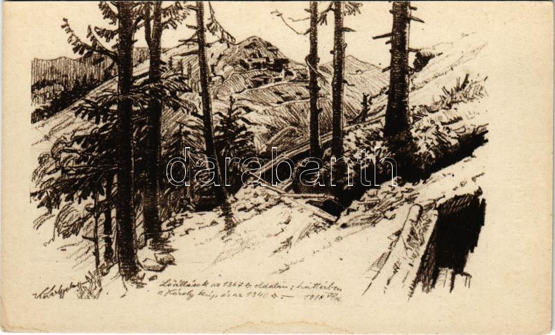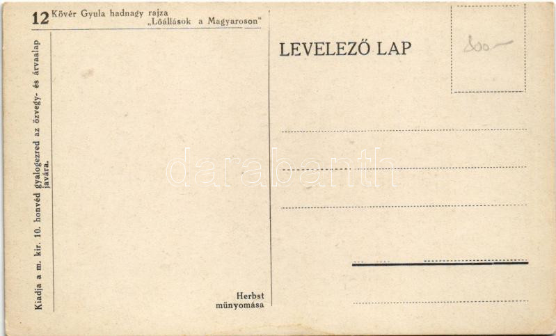 Lőállások a Magyaroson. Kiadja a m. kir. 10. honvéd gyalogezred az özvegy- és árvaalap javára. Herbst műnyomása - 12. / WWI Austro-Hungarian K.u.K. military art postcard s: Kövér Gyula hadnagy