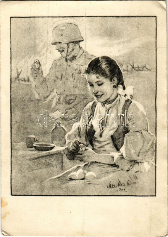 Beschreibung: Második világháborús magyar katonai húsvéti üdvözlet / WWII Hungarian military Easter greeting s: Markó Lajos (EK)