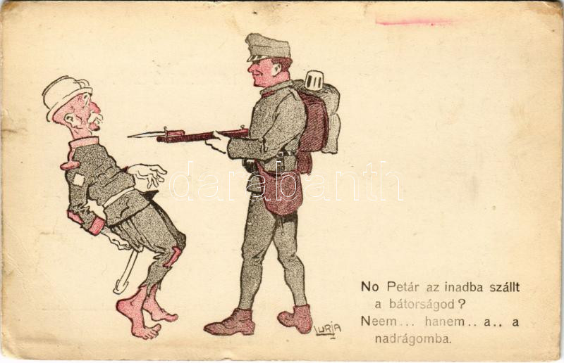 No Petár az inadba szállt a bátorságod? I. Péter szerb király, humoros karikatúra, osztrák-magyar szerbellenes katonai propaganda. Klopfer 7. / WWI K.u.k. Anti-Serbian mocking propaganda, military caricature of Peter I of Serbia s: Lurja (lyuk / pinhole)