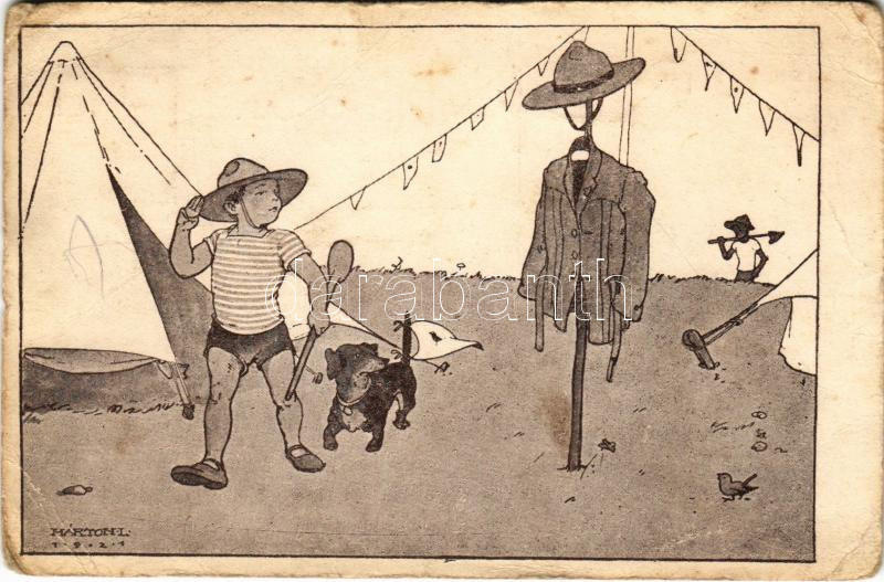 Beschreibung: Helyettes parancsnok. R.M. Cserkészcsapatai 3. / Hungarian boy scout art postcard s: Márton L. (fa)