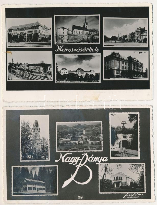 Beschreibung: 2 db RÉGI erdélyi moziak képeslap: Marosvásárhely, Nagybánya / 2 pre-1945 Transylvanian multi-view postcards: Targu Mures, Baia Mare