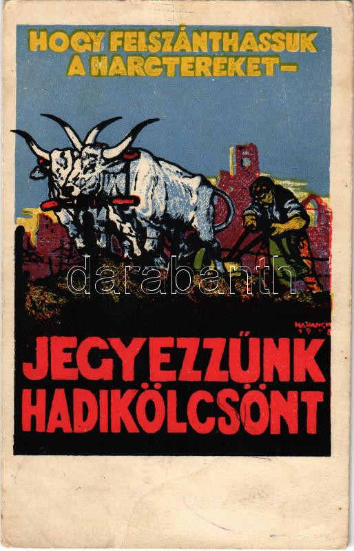 1918 Hogy felszánthassuk a harctereket, jegyezzünk hadikölcsönt! / WWI Austro-Hungarian K.u.K. military war loan propaganda art postcard s: Haranghy + "K.u.K. Infanterieregiment Kais. und Königin Maria Theresia Nr. 32" "TÁBORI POSTAHIVATAL 648" (fl)
