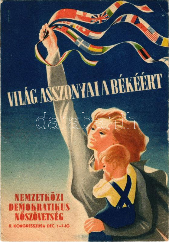 1949 Világ asszonyai a békéért! Nemzetközi Demokratikus Nőszövetség II. Kongresszusa. Köszöntjük a világ békeszerető asszonyait! / Advertisement card for the 2nd Congress of the Women's International Democratic Federation, propaganda s: K. Bócz István (EB)