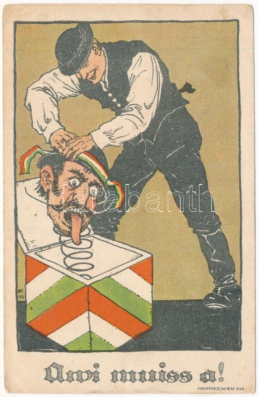 Awi muiss a! Anläßlich der Befreiung des Burgenlandes: Der Ödenburger Heimatdienst. Kunstverlag Amon Güth Wien, Hermes / Burgenland felszabadÃtása alkalmából: a soproni hazaszolgálat - Osztrák magyar-ellenes propaganda / On the occasion of the liberation of Burgenland: Sopron's homeland service - Austrian anti-Hungarian propaganda s: E.K. (Rb)
