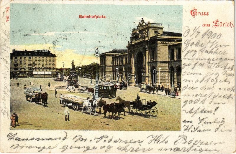 1900 Zürich, Zurich; Bahnhofplatz / railway station, horse-drawn tram,... https://www.darabanth.com/de/472-Fernauktion/472.0/Ansichtskarten/Schweiz~1500108/1900-Zurich-Zurich-Bahnhofplatz-railway-station-horse-drawn-tram-hotel-fa~II2542892