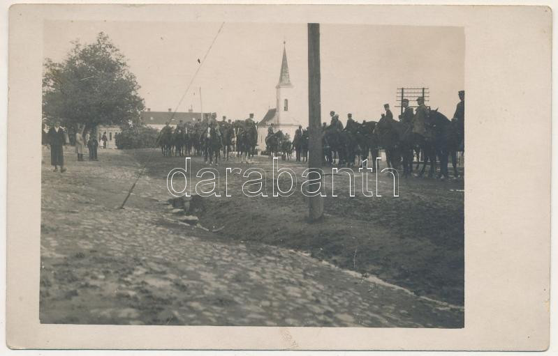 Beschreibung: 1927 Szerdahely, Miercurea Sibiului, Mercurea, Merkurea, Reussmarkt; Román lovaskatonák / Romanian military, cavalrymen. photo (fl)