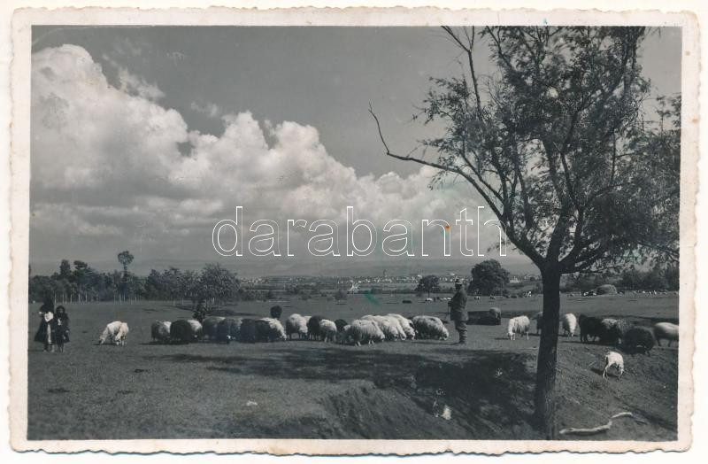 Beschreibung: 1942 Medgyes, Mediasch, Medias; erdélyi folklór, birkanyáj / Transylvanian folklore, flock of sheep. photo (fl)