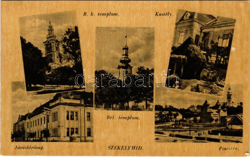 1943 Székelyhíd, Sacueni; Római katolikus templom, Református templom, Járásbíróság, Piac tér, Stubenberg kastély / Catholic church, Calvinist church, court, square, castle
