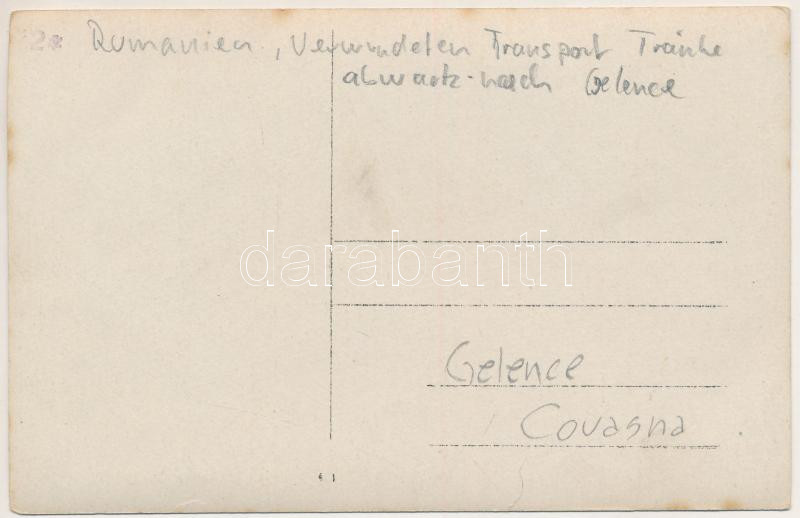 Gelence, Ghelinta; Verwundeten Transport Train abwartz nach Gelence / sebesülteket szállító trén Gelence irányába / WWI K.u.K. military, injured soldiers on their way to Ghelinta. photo (EK)