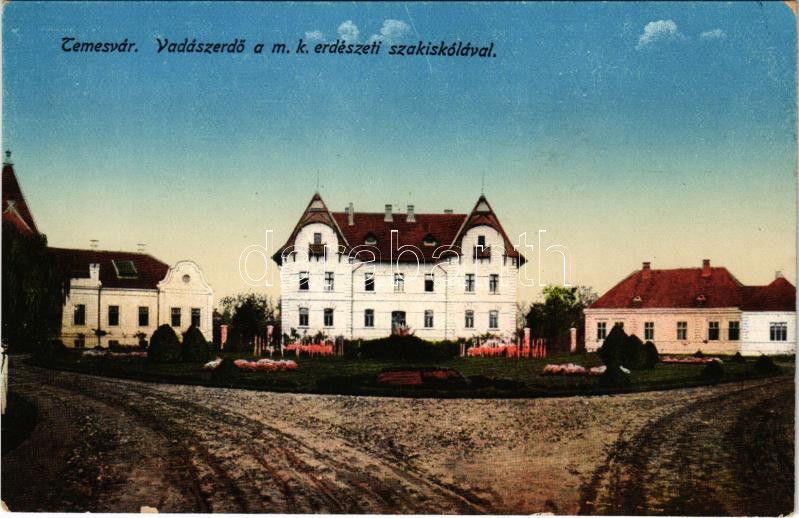 Beschreibung: Újszentes, Vadászerdő, Dumbravita, Santesti (Temesvár, Timisoara); M. kir. erdészeti szakiskola / forestry school