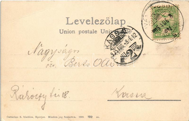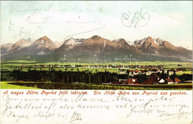 1905 Tátra, Tatry; A Magas-Tátra Poprád felől tekintve. Cattarino S. kiadása 192. sz. / Die Hohe Tatra von Poprad aus gesehen / view of the High Tatras from Poprad (EB)
