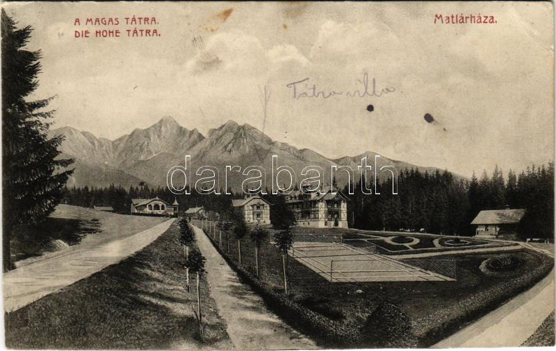 Matlárháza, Matliary, Tatranské Matliare (Magas-Tátra, Vysoké Tatry); ... https://www.darabanth.com/de/472-Fernauktion/472.0/Ansichtskarten/Slowakei~1500008/Matlarhaza-Matliary-Tatranske-Matliare-Magas-Tatra-Vysoke-Tatry-teniszpalya-villa-Diva~II3197802