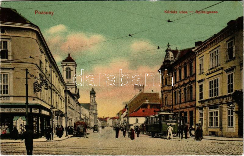 Pozsony, Pressburg, Bratislava; Kórház utca, villamos, Hackenberger Te... https://www.darabanth.com/de/472-Fernauktion/472.0/Ansichtskarten/Slowakei~1500008/Pozsony-Pressburg-Bratislava-Korhaz-utca-villamos-Hackenberger-Testverek-uzlete-kereskede~II3193632