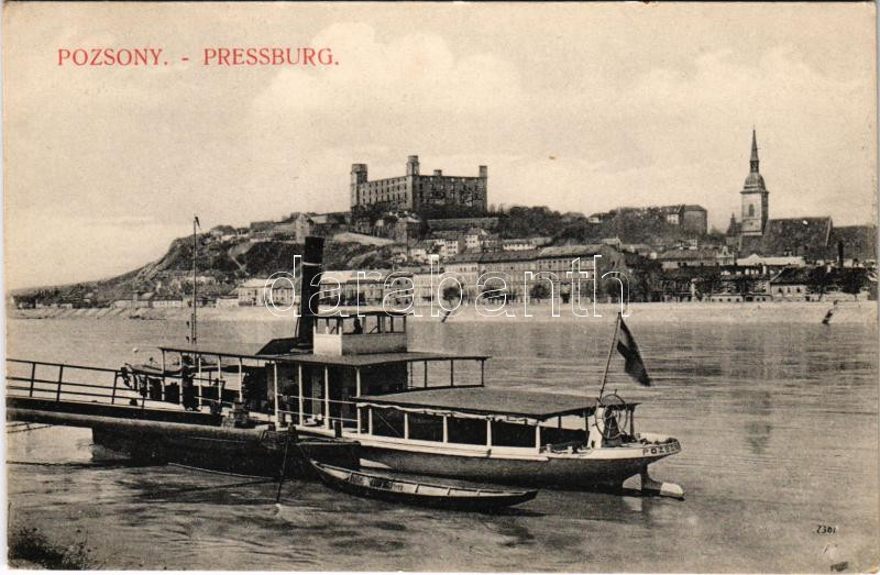Pozsony, Pressburg, Bratislava; ingahajó a Dunán, vár / shuttle boat o... https://www.darabanth.com/de/472-Fernauktion/472.0/Ansichtskarten/Slowakei~1500008/Pozsony-Pressburg-Bratislava-ingahajo-a-Dunan-var-shuttle-boat-ont-he-Danube-castle-EK~II3177044