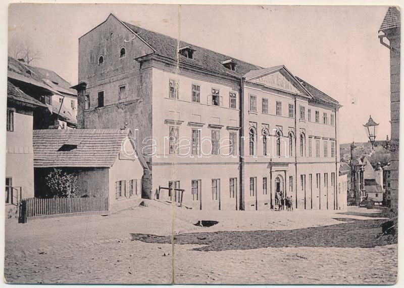 Selmecbánya, Schemnitz, Banska Stiavnica; Evangélikus lÃceum. Hátoldal... https://www.darabanth.com/de/472-Fernauktion/472.0/Ansichtskarten/Slowakei~1500008/Selmecbanya-Schemnitz-Banska-Stiavnica-Evangelikus-liceum-Hatoldalon-Breznyik-Janos-sireml~II3197772