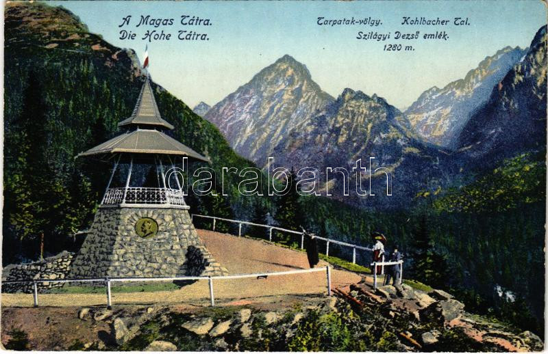Tátra, Magas-Tátra, Vysoké Tatry; Tarpatak-völgy, Szilágyi Dezső emlék... https://www.darabanth.com/de/472-Fernauktion/472.0/Ansichtskarten/Slowakei~1500008/Tatra-Magas-Tatra-Vysoke-Tatry-Tarpatak-volgy-Szilagyi-Dezso-emlektorony-Kohlbacher-Tal~II3200335