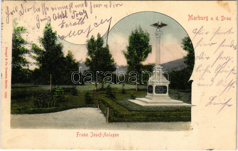 1902 Maribor, Marburg; Franz Josef-Anlagen / park, monument (fl) https://www.darabanth.com/de/472-Fernauktion/472.0/Ansichtskarten/Slowenien~1500112/1902-Maribor-Marburg-Franz-Josef-Anlagen-park-monument-fl~II3196552