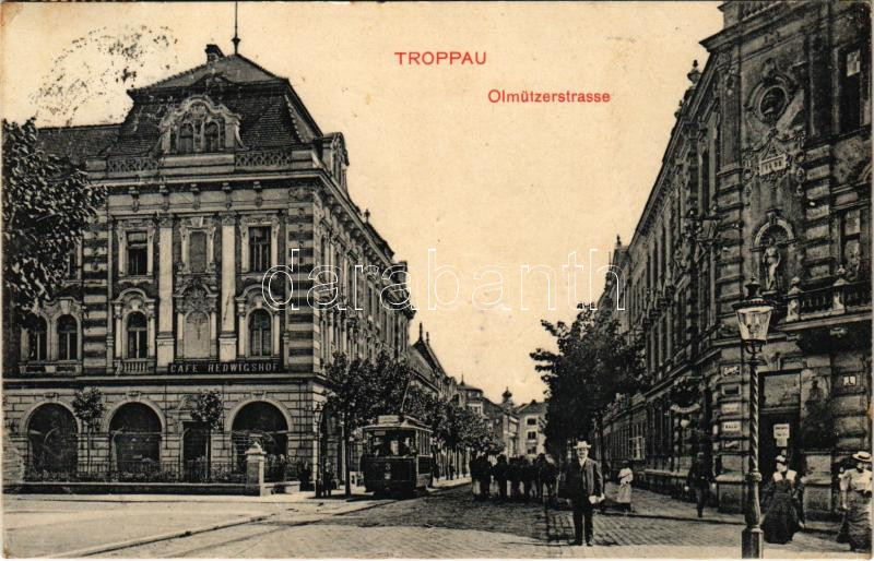 1911 Opava, Troppau; Olmützerstrasse, Cafe Hedwigshof / street, tram, ... https://www.darabanth.com/de/472-Fernauktion/472.0/Ansichtskarten/Tschechische-Republik~1500040/1911-Opava-Troppau-Olmutzerstrasse-Cafe-Hedwigshof-street-tram-shop-cafe-EK~II3083328