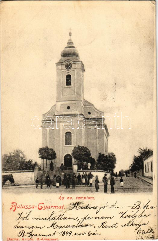 1899 (Vorläufer) Balassagyarmat, Evangélikus templom. Darvai Ármin kia... https://www.darabanth.com/de/472-Fernauktion/472.0/Ansichtskarten/Ungarn~1500006/1899-Vorlaufer-Balassagyarmat-Evangelikus-templom-Darvai-Armin-kiadasa-EK~II3166505