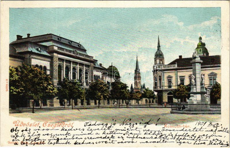 Beschreibung: 1901 Cegléd, Kossuth tér, Városház. Sebők Béla kiadása (kis szakadás / tiny tear)