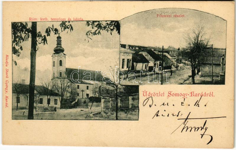 1905 Karád, Somogy-Karád; Római katolikus templom és iskola, Fő utca. ... https://www.darabanth.com/de/472-Fernauktion/472.0/Ansichtskarten/Ungarn~1500006/1905-Karad-Somogy-Karad-Romai-katolikus-templom-es-iskola-Fo-utca-Kiadja-Stark-Gyorgy~II3200440