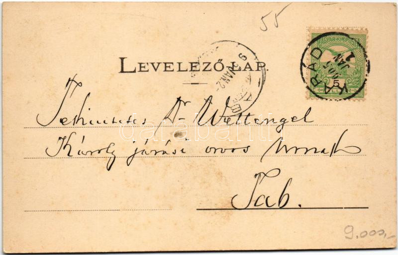 Beschreibung: 1905 Karád, Somogy-Karád; Római katolikus templom és iskola, Fő utca. Kiadja Stark György