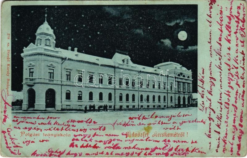 1905 Kecskemét, Polgári leányiskola este télen. Divald Károly 298. (EB... https://www.darabanth.com/de/472-Fernauktion/472.0/Ansichtskarten/Ungarn~1500006/1905-Kecskemet-Polgari-leanyiskola-este-telen-Divald-Karoly-298-EB~II2532725