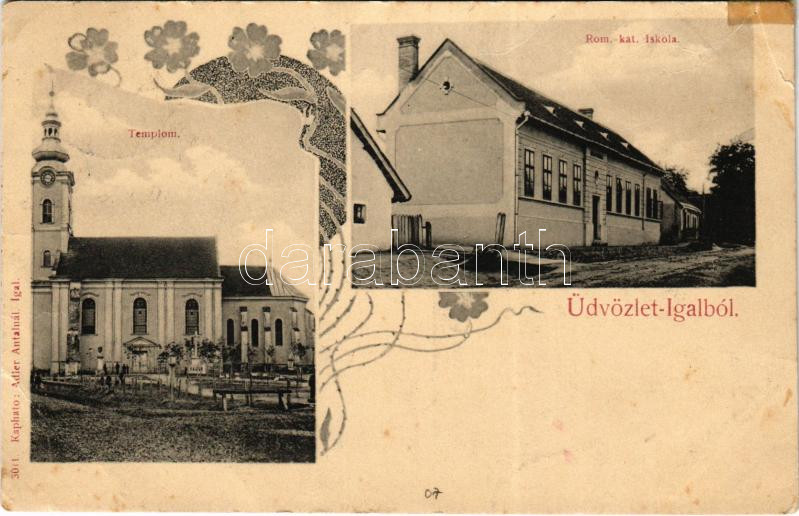1907 Igal (Somogy), Római katolikus iskola, templom. kapható Adler Ant... https://www.darabanth.com/de/472-Fernauktion/472.0/Ansichtskarten/Ungarn~1500006/1907-Igal-Somogy-Romai-katolikus-iskola-templom-kaphato-Adler-Antalnal-Art-Nouveau-floral-~II3194312