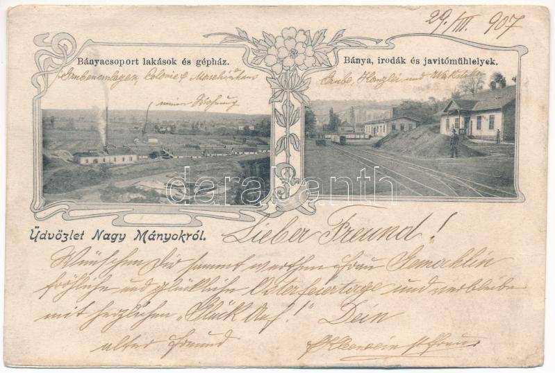 1907 Nagymányok, Bánya csoport lakások és gépház, bánya, irodák és jav... https://www.darabanth.com/de/472-Fernauktion/472.0/Ansichtskarten/Ungarn~1500006/1907-Nagymanyok-Banya-csoport-lakasok-es-gephaz-banya-irodak-es-javitomuhelyek-Art-N~II3197564