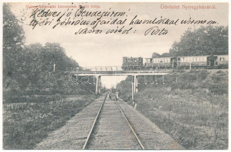 1907 Nyíregyháza, Nyíregyházvidéki kisvasutak sóstói vasúti hídja, von... https://www.darabanth.com/de/472-Fernauktion/472.0/Ansichtskarten/Ungarn~1500006/1907-Nyiregyhaza-Nyiregyhazvideki-kisvasutak-sostoi-vasuti-hidja-vonat-Piringer-Janos-u~II3165133