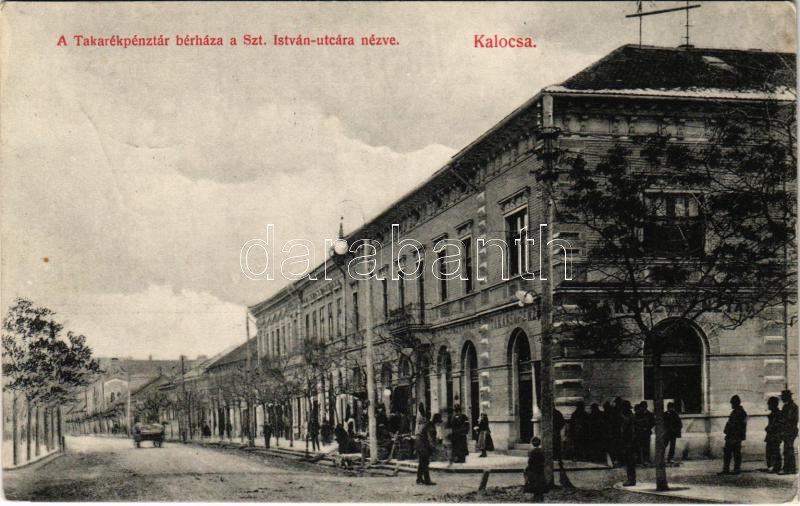 1915 Kalocsa, Takarékpénztár bérháza a Szent István utcára nézve. Jurc... https://www.darabanth.com/de/472-Fernauktion/472.0/Ansichtskarten/Ungarn~1500006/1915-Kalocsa-Takarekpenztar-berhaza-a-Szent-Istvan-utcara-nezve-Jurcso-Antal-kiadasa~II3197237