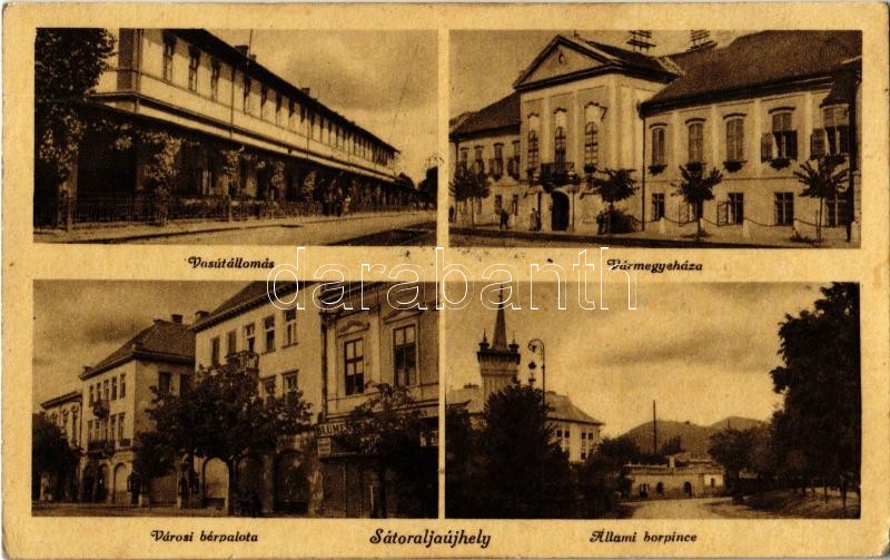 1944 Sátoraljaújhely, Vasútállomás, Vármegyeháza, Városi bérpalota, Ál... https://www.darabanth.com/de/472-Fernauktion/472.0/Ansichtskarten/Ungarn~1500006/1944-Satoraljaujhely-Vasutallomas-Varmegyehaza-Varosi-berpalota-Allami-borpince-Aigne~II1986199