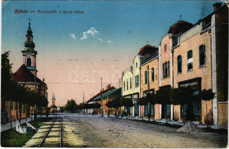 Békés, Kossuth Lajos utca, templom, kisvasút vasúti sín. Végh Lajos ki... https://www.darabanth.com/de/472-Fernauktion/472.0/Ansichtskarten/Ungarn~1500006/Bekes-Kossuth-Lajos-utca-templom-kisvasut-vasuti-sin-Vegh-Lajos-kiadasa-EK~II3165090