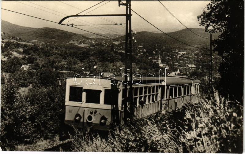 Beschreibung: Budapest XII. Szabadsághegy (Széchenyi-hegy), fogaskerekű vasút, vonat. Képzőművészeti Alap (EK)