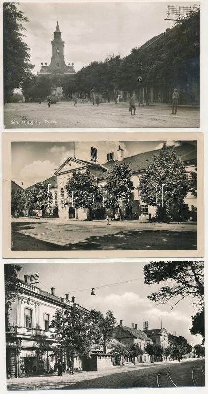 Sátoraljaújhely - 3 db vegyes fekete-fehér képeslap (Tanácsháza, Fő utca, Ady tér, MÁV Hegyközi kisvasút vonala, fordítókorong, Bodrogközi Gazdasági Vasút BKGV)