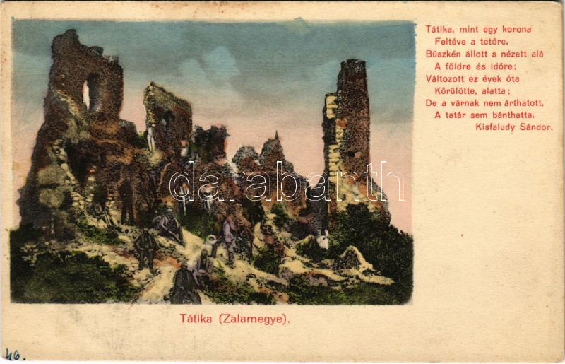 Zalaszántó, Tátika várrom, Kisfaludy Sándor verse. Mérei Ignác kiadása... https://www.darabanth.com/de/472-Fernauktion/472.0/Ansichtskarten/Ungarn~1500006/Zalaszanto-Tatika-varrom-Kisfaludy-Sandor-verse-Merei-Ignac-kiadasa-fl~II3198630