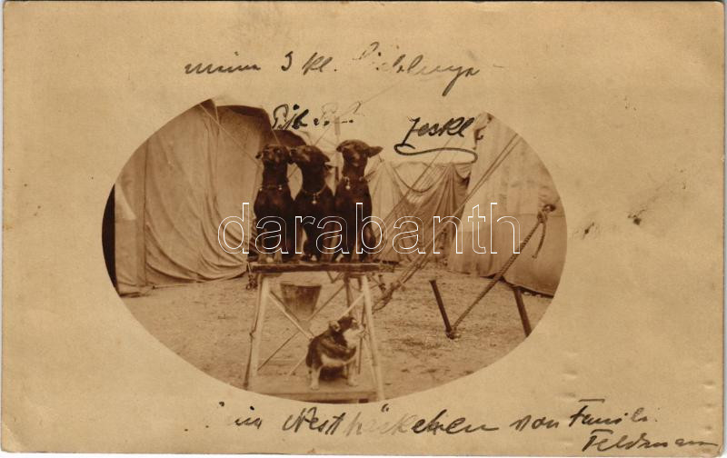 Cirkuszi kutyák / Circus dogs. photo (EK) https://www.darabanth.com/de/472-Fernauktion/472.0/Ansichtskarten/Zirkus~1500021/Cirkuszi-kutyak-Circus-dogs-photo-EK~II3180443