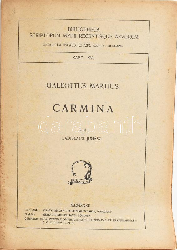 Galeottus Martius: Carmina. Edidit Ladislaus Juhász. Biliotheca Script... https://www.darabanth.com/de/472-Fernauktion/472.0/Bucher/Bucher-Andere-kuriositaten~500036/Galeottus-Martius-Carmina-Edidit-Ladislaus-Juhasz-Biliotheca-Scriptorum-Medii-Recentisque-Aevoru~II3080539