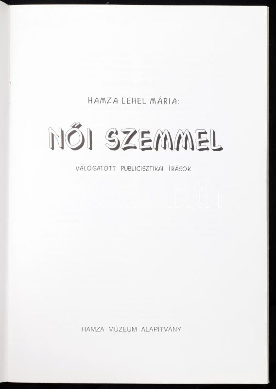 Hamza Lehel Mária: Női szemmel (válogatott publicisztikai művek). Jászberény, 1997, Hamza Múzeum Alapítvány. 36 p. Fekete-fehér képekkel, többek közt divatrajzokkal illusztrált. Kiadói papírkötés, kiadói papír védőborítóval.