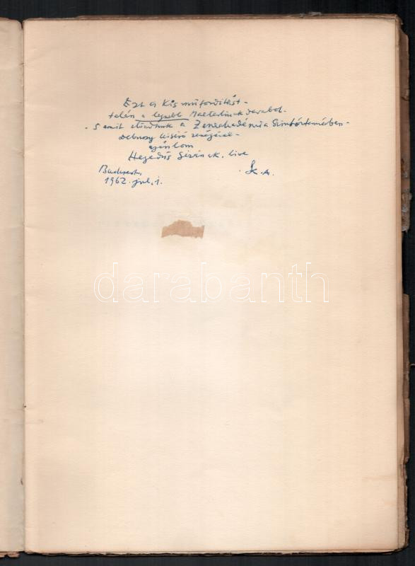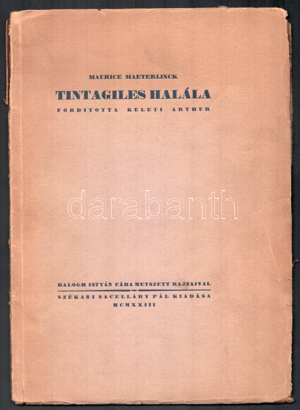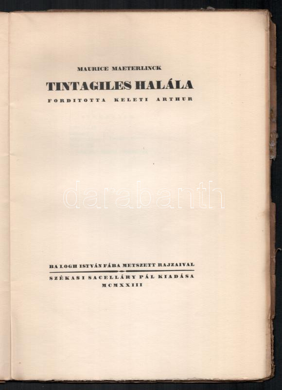Maurice Maeterlinck: Tintagiles halála. Ford.: Keleti Arthur. A fordító, Keleti Artúr (1889-1969) költő, műfordító által Hegedüs Géza (1912-1999) író, költő, műfordító részére DEDIKÁLT példány! Bp.,1923., Székasi Sacelláry Pál,41+3 p. Balogh István fametszetű illusztrációival. Kiadói papírkötés, szakadt borítóval. Számozott (72./500) példány.