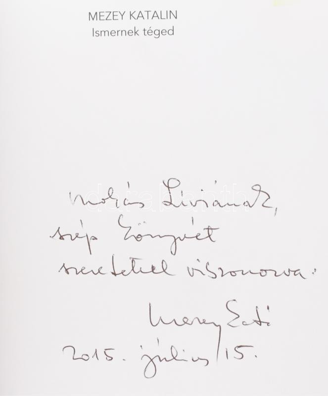 Mezey Katalin: Ismernek téged. (Elbeszélések és kisregények, 2001-2013.) A szerző, Mezey Katalin (1943- ) Kossuth- és József Attila-díjas prózaíró, költő, műfordító által Mohás Lívia (1928-2024) pszichológus, József Attila-díjas írónak DEDIKÁLT példány. Bp., 2014, Magyar Napló. Oláh Mátyás László illusztrációival. Kiadói kartonált papírkötés.