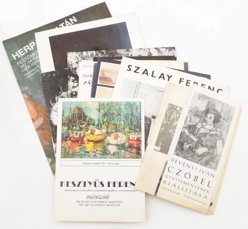 15 db vegyes képzőművészeti, festészeti prospektus, közte Kesztyűs Ferenc (1932- ) DEDIKÁLT kiállítási prospektusa, Czóbel Béla prospektusok, Bakallár József festőművész magyar-japán nyelvű prospektusa, stb.