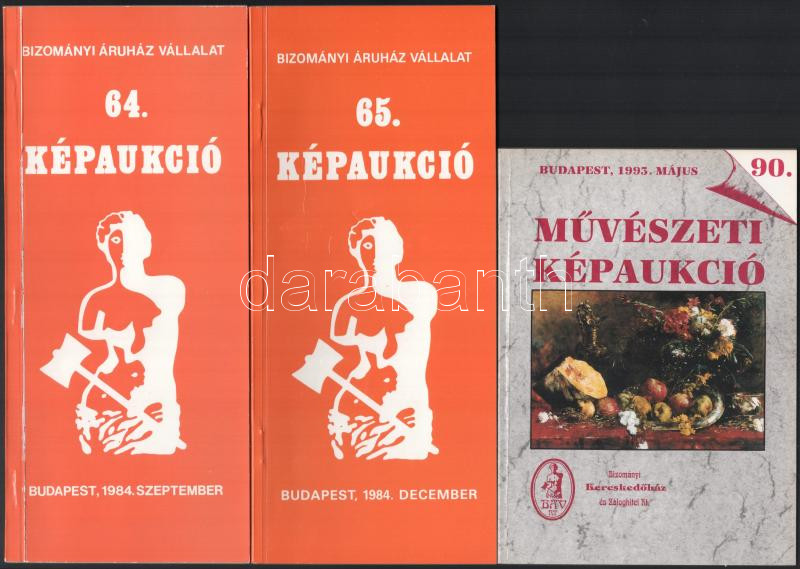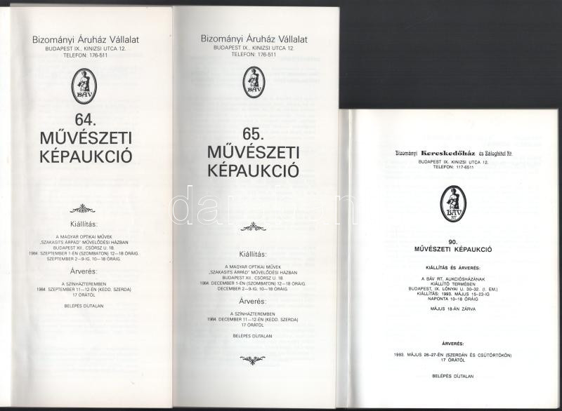 1984-1993 BÁV aukciós katalógusok, 3 db: 64., 65. Képaukció, 90. Művés... https://www.darabanth.com/de/472-Fernauktion/472.0/Bucher/Bucher-Architektur-Kunst~2000026/1984-1993-BAV-aukcios-katalogusok-3-db-64-65-Kepaukcio-90-Muveszeti-Kepaukcio-Az-el~II3180703